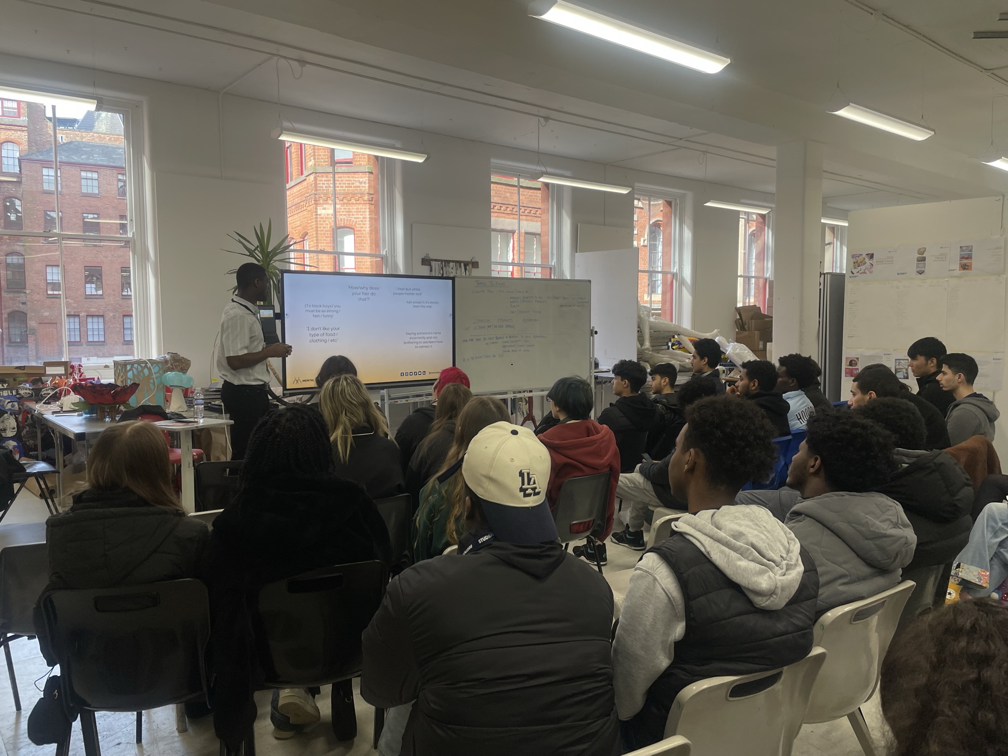 Nathan spoke to students about how they can use art to raise awareness and highlight important topics, encouraging them to think beyond traditional career paths and explore creative industries in new ways.